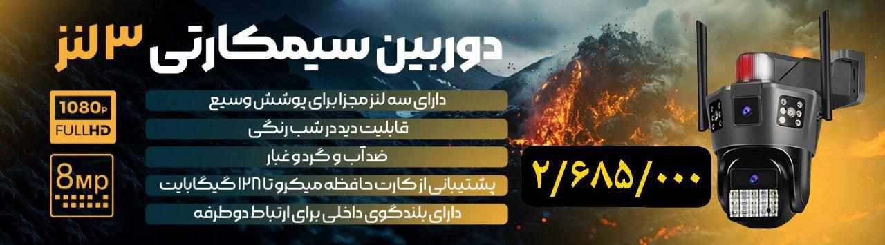 دوربین سیمکارتی ۳لنز آژیردار دارای هوش مصنوهی ورژن اروپا۴٬۹۰۰٬۰۰۰ 20%