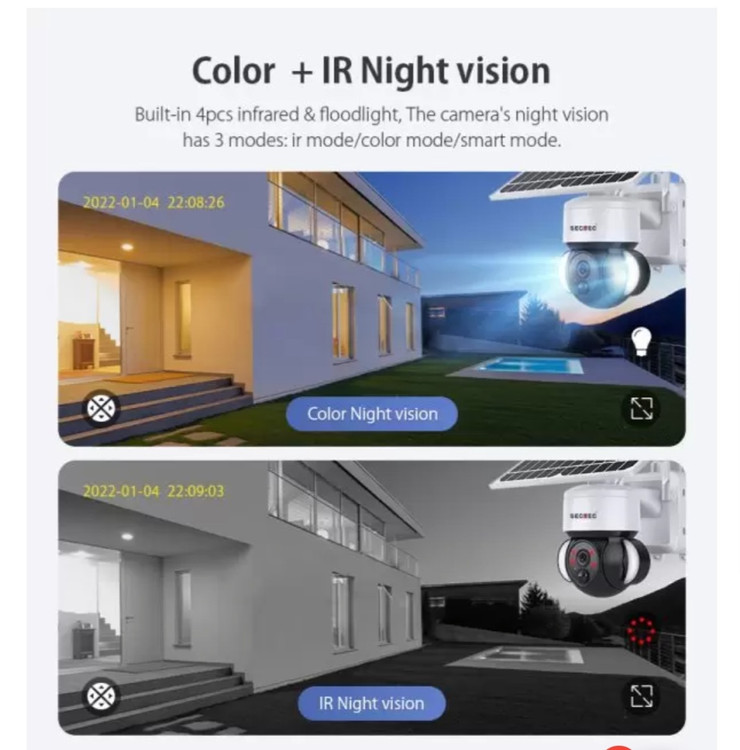 این دوربین مداربسته سولار با ویژگیهایی مانند سیستم امنیتی ضدآب، قابلیت کارکرد با وایفای، پان، تیلت و زوم، با چراغهای قرمز و آبی، و توانایی PIR، برای محیطهای خارجی و داخلی بسیار مناسب است. همچنین با دارا بودن تکنولوژی PIR، این دوربین به طور خودکار حرکت انسانها را تشخیص میدهد و از طریق ارسال هشدار، کاربر را در جریان قرار میدهد. بدون نیاز به کابل کشی، نصب این دوربین بسیار آسان و سریع است.