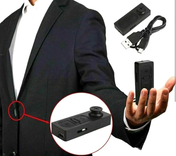 دوربین دکمه ای از داخل لباس جای یکی از دکمه های لباس زده میشود و با زدن یک دکمه به صورت مخفیانه فیلمبرداری با کیفیت بالا و full HD همراه با صدا می باشد.