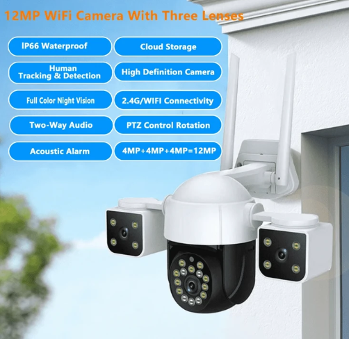 با سه لنز و سنسور ۱۲مگاپیکسل واقعی، این دوربین تصاویری با وضوح بسیار بالا و جزئیات دقیق فراهم میکند. این کیفیت برای محیطهای بزرگ و نقاطی که نیاز به پوشش وسیع دارند، بسیار مناسب است.